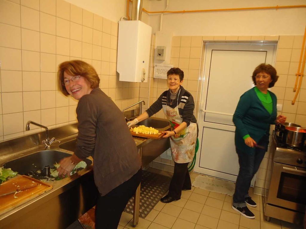 À midi, ceux qui avait réservé un repas avec potage maison, bœuf bourguignon pommes vapeur, fromage, tarte, ¼ vin et café leur a été servi.