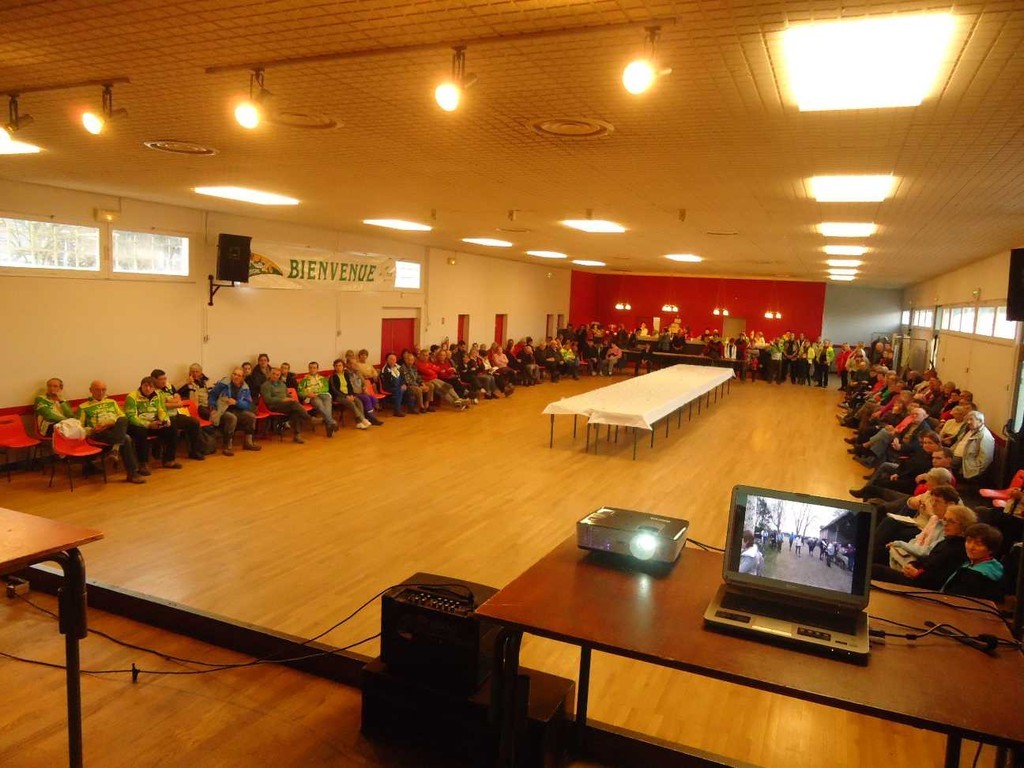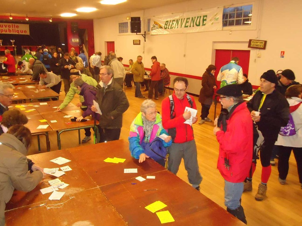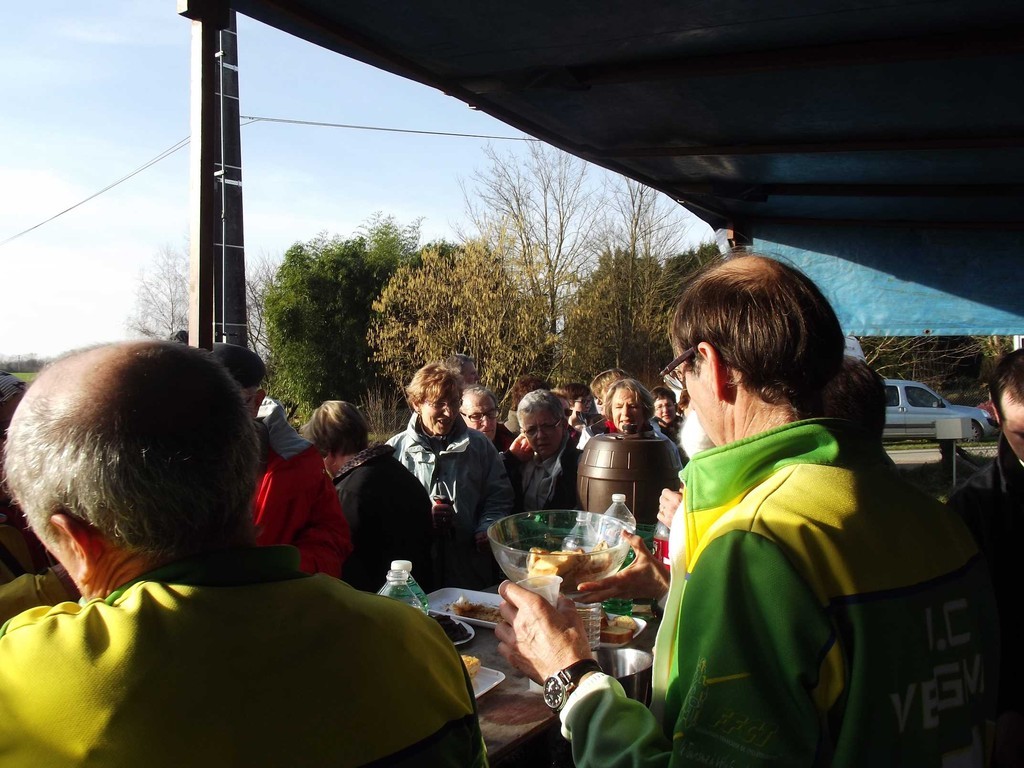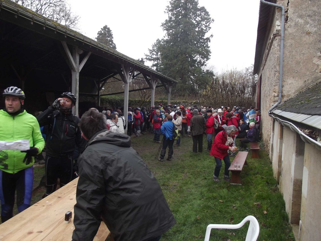 Pour la marche du matin, les parcours traversaient les bois des Varennes, Renuaume, le village de Sardelle, le Château de la Gueritaude, la belle Jonchére, le ruisseau de Taffoneau, ses bois et son Château du 15 éme siècle où a été servi aux randonneurs un copieux ravitaillement accompagné de boissons chaudes thé, café et le traditionnel vin chaud, après les parcours se séparent le petit de 13 km il longe les bois de Taffoneau passe à la Jouberdière et Temple de l’amour, la Morillére et retour à la salle des fêtes, le grand parcours 20,7 km est passé par l’Hommais, la Vilaine, la Baudellière, la Roche, la Brosse avec un deuxième ravitaillement à Taffoneau avant d’emprunter le sentier du retour identique au petit parcours, à l’arrivée à la salle des fêtes une boisson a été offerte à tous les randonneurs.