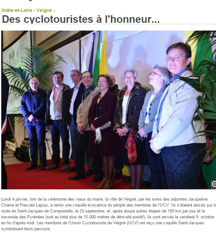 11 licenciés de l'U C V sont partir pour Saint Jacques-de-Compostelle soit 1450 km à vélo du 24 septembre au 11 octobre. Suivez leur étapes les sur le blog : http://ucv-compostelle.blogspot.fr/