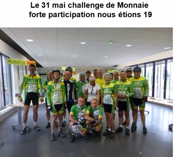 Participation des clubs d'Indre-et-Loire de l'Union Cyclotourisme de Touraine, Chinon, Chateau-Renault, Richelieu, Descartes, Perrusson, Chambray-lès-Tours, et des clubs voisins: Saumur, Fleury-les-Aubrais, Faverolles-Montrichard sans oublier les 15 membres de l'UC Veigné.